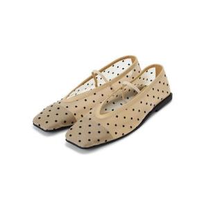 ミラ オーウェン Mila Owen スクエアトゥチュールドットバレエシューズ (BEG)